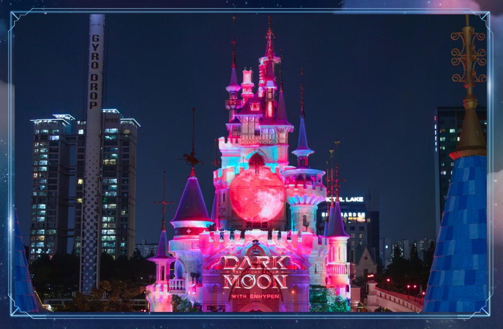 2024년 롯데월드 할로윈 축제의 메인 테마는 다크문입니다. 다크문은 판타지적인 요소와 어둡고 신비로운 분위기를 결합한 테마로, 롯데월드 곳곳에 특별한 미디어 맵핑쇼와 포토존이 준비되어 있습니다. 특히 아이돌 그룹 엔하이픈(ENHYPEN)과의 콜라보레이션으로 더욱 화제가 되고 있습니다.