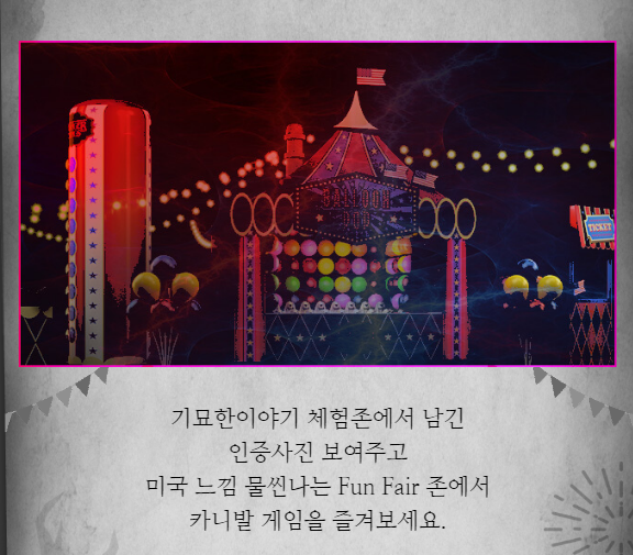 아케이드 게임장에서는 스페셜 굿즈를 받을 수 있으며 미국 카니발의 느낌도 즐길 수 있습니다.