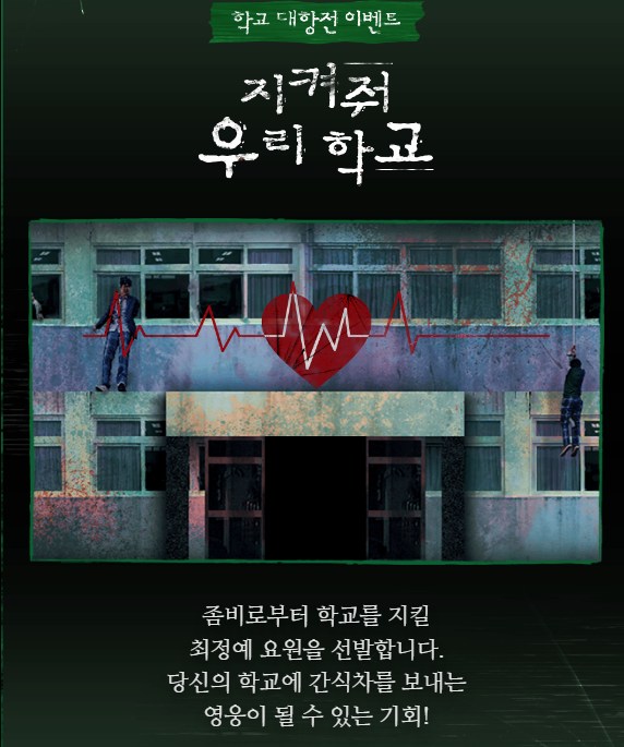 좀비퇴치훈련소에서 훈련받고 최정예요원이 되어 좀비를 물리치고 영웅이 될 수 있는 기회