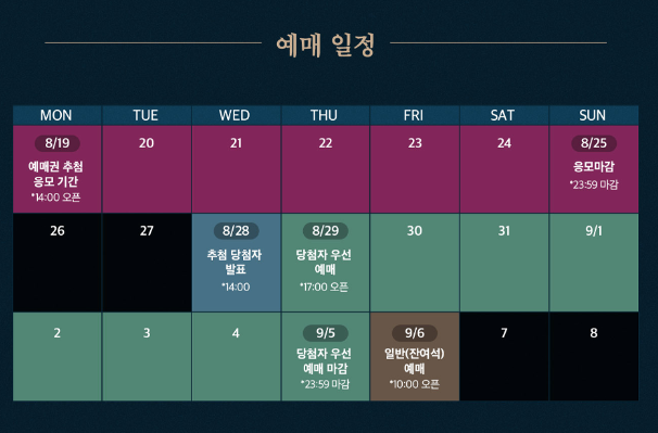 당첨자는 8월 29일 15:00~9월 5일 23:59까지 예매와 결제를 마쳐야 합니다.
